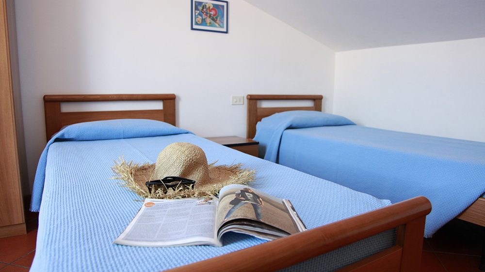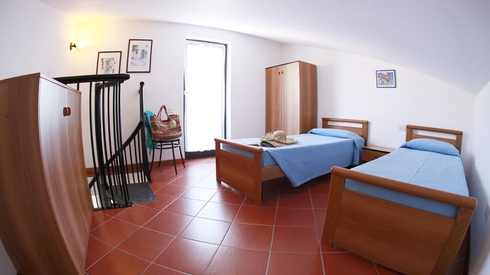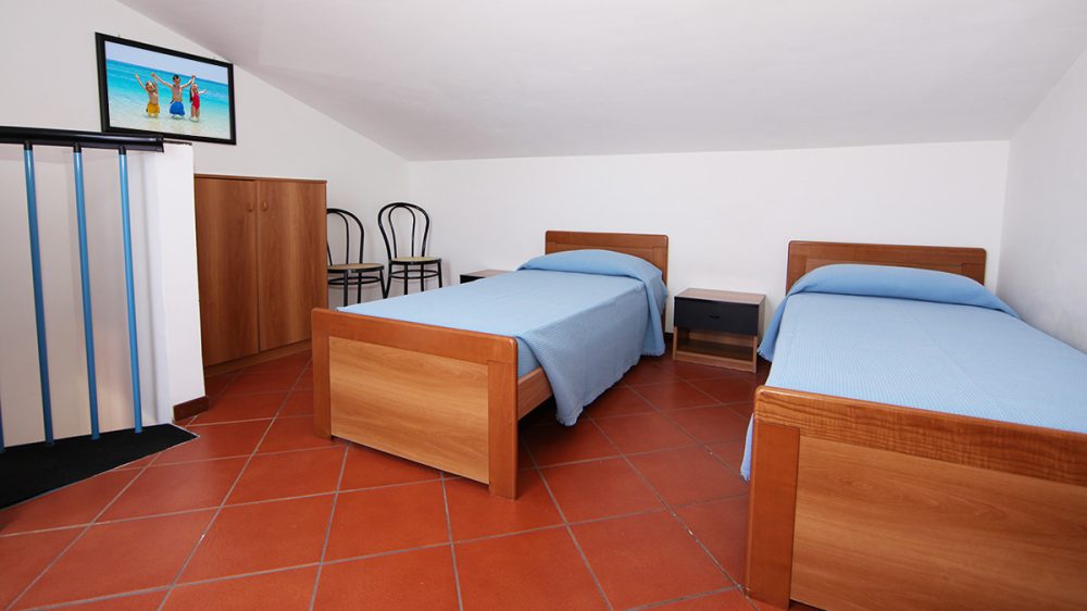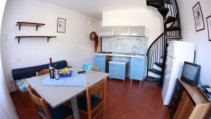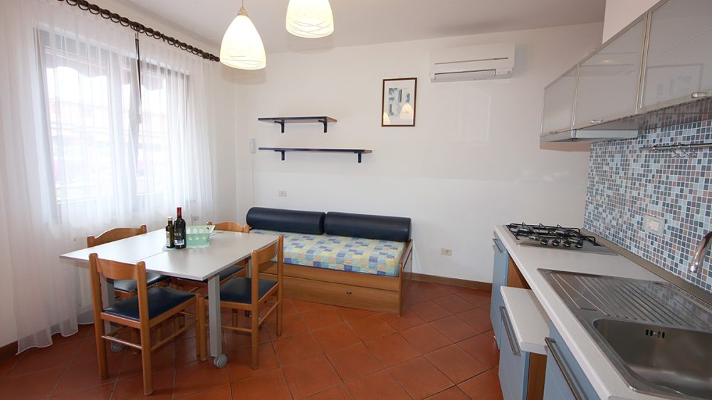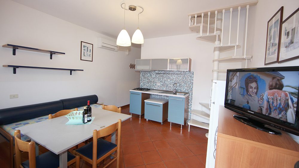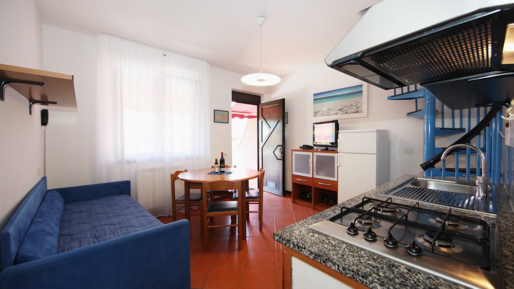 Trilocale con 4 letti+1: situato al 1. piano internamente disposto su due piani ĆØ composto da soggiorno con angolo cottura, divano letto, ampia camera matrimoniale, camera a due letti bassi, balcone attrezzato, bagno.